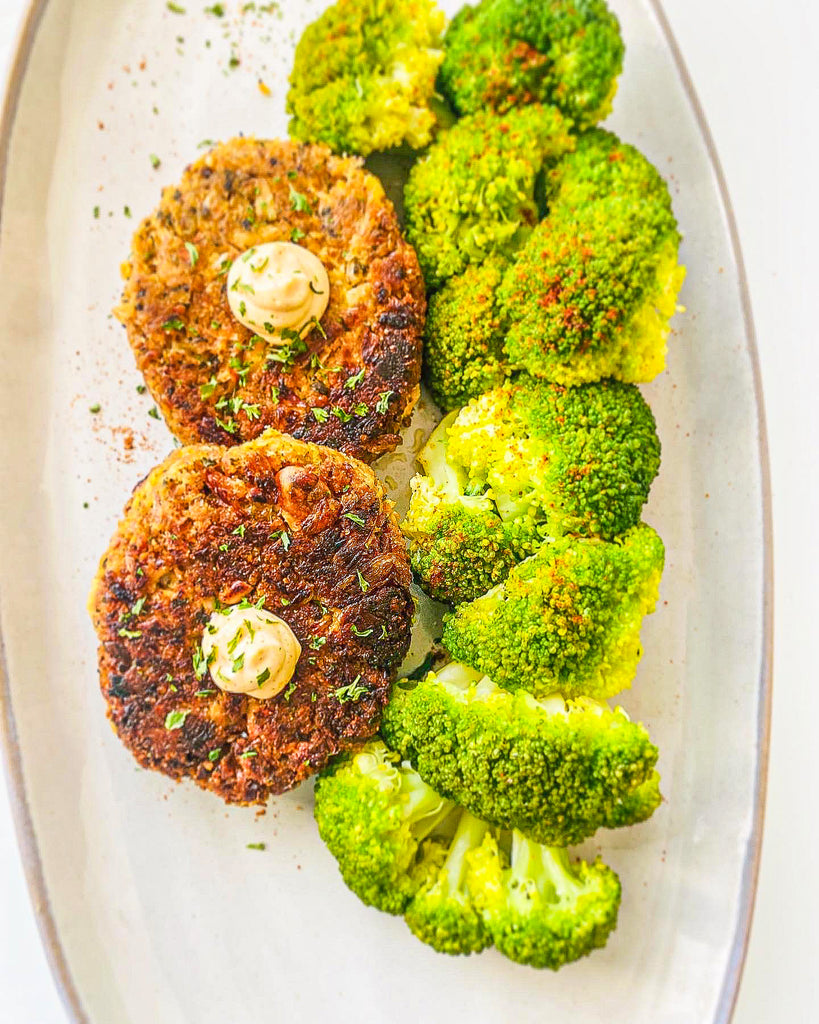 Comes with three (3) meals of delicious jackfruit veggie cakes, another three (3) additional meals with a protein of your choice, a choice of both a veggie and a side.